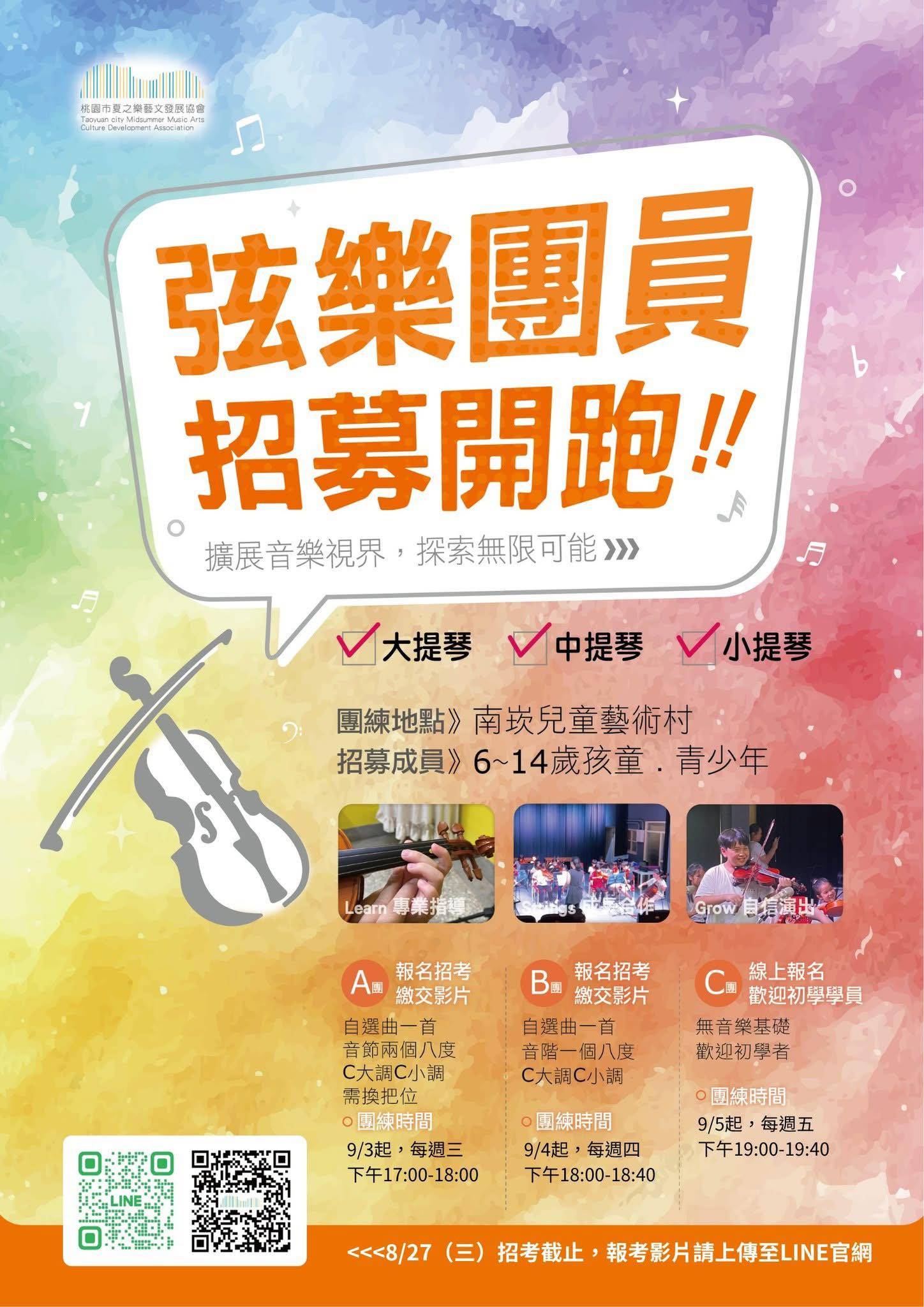 【夏之樂藝文發展協會弦樂團】熱情招募中